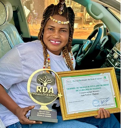 L’artiste Natou Baswidga a été distinguée Meilleure titulaire de droit de la région du Nazinon. Un trophée accueilli avec émotion et fierté par la lauréate, qui y voit l’aboutissement de nombreuses années de travail acharné et d’un engagement constant en faveur de la culture burkinabè.